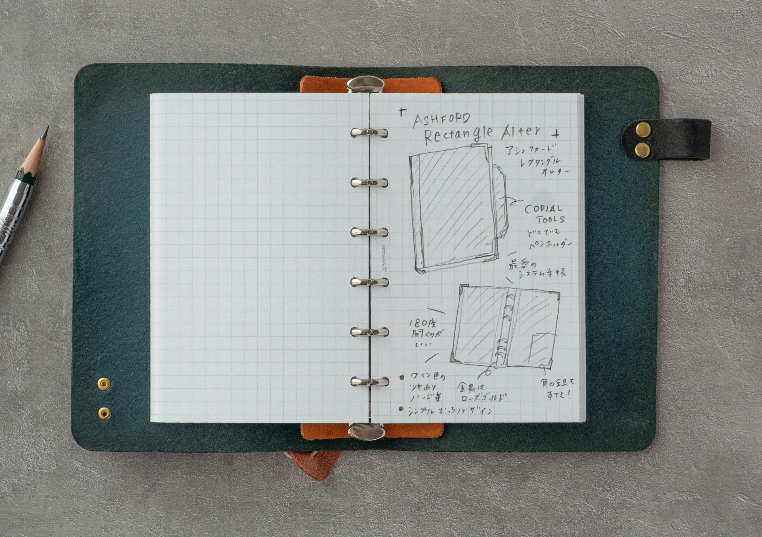 ほどよい濃さの罫線は、毎日のメモやスケッチ、アイディア出しにぴったり。
